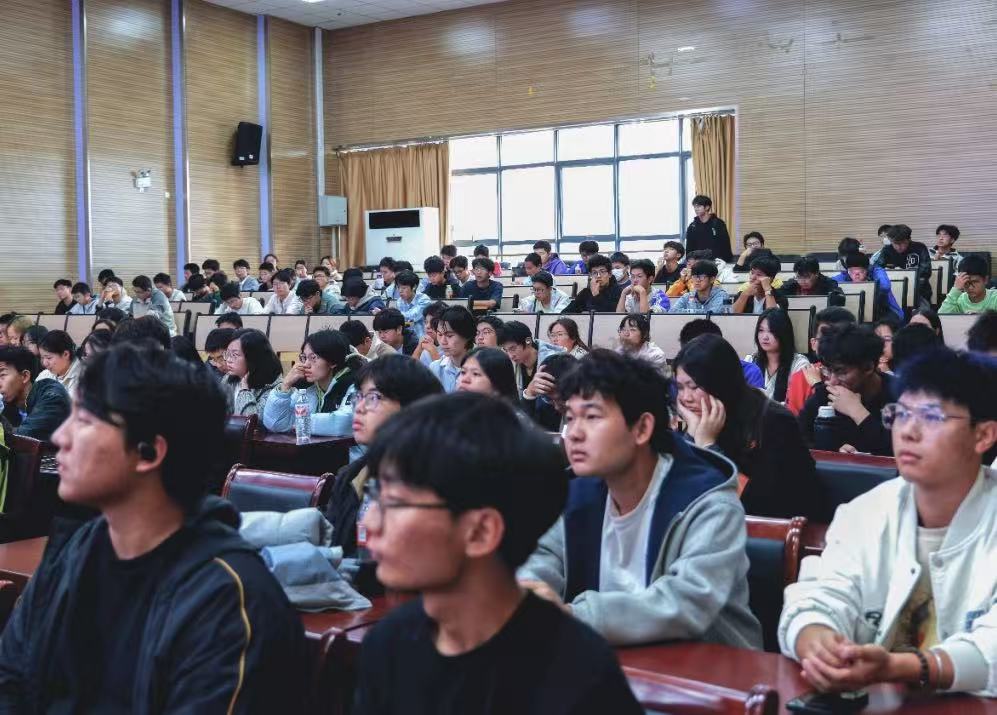 全体同学能以此次报告内容为契机,夯实创新基础,提升创新技能,探索专业前沿,合理做好规划,努力成为地学创新人才!并宣布学院将设立“测绘股份科创奖学金”,助力为进一步融合前沿知识与科研实践能力,提升创新综合素质与实操技能,营造良好创新创业氛围,10月24日,“汇聚前沿浪潮,创新驱动启航”地球科学与工程学院江苏省青年前沿科学讲堂暨本科生创新创业训练营于江宁校区笃学楼208开展。本次训练营由地学院党委副书记、副院长张玲彬主持,地学院院长刘瑾、中国国际大学生创新大赛金奖项目负责人、2025级博士生胡殿俊出席并做专题报告。全校师生200余人参与本次活动。