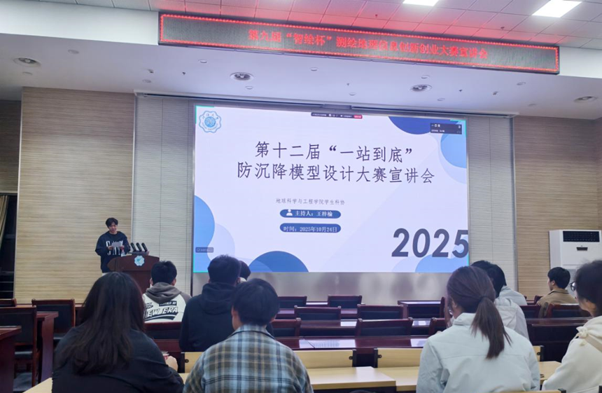 10月25日晚上,地学院科协在江宁校区笃学楼208与金坛校区二号楼A213举办第十二届“一站到底”防沉降模型设计大赛宣讲会。活动旨在帮助同学们深入理解赛制、激发创新思维,并搭建新老选手交流桥梁,为后续模型设计与制作预热。本次宣讲会邀请了工程地质与灾害研究所的周盛涛担任主讲老师,往届优秀获奖代表马小薇分享参赛经验。