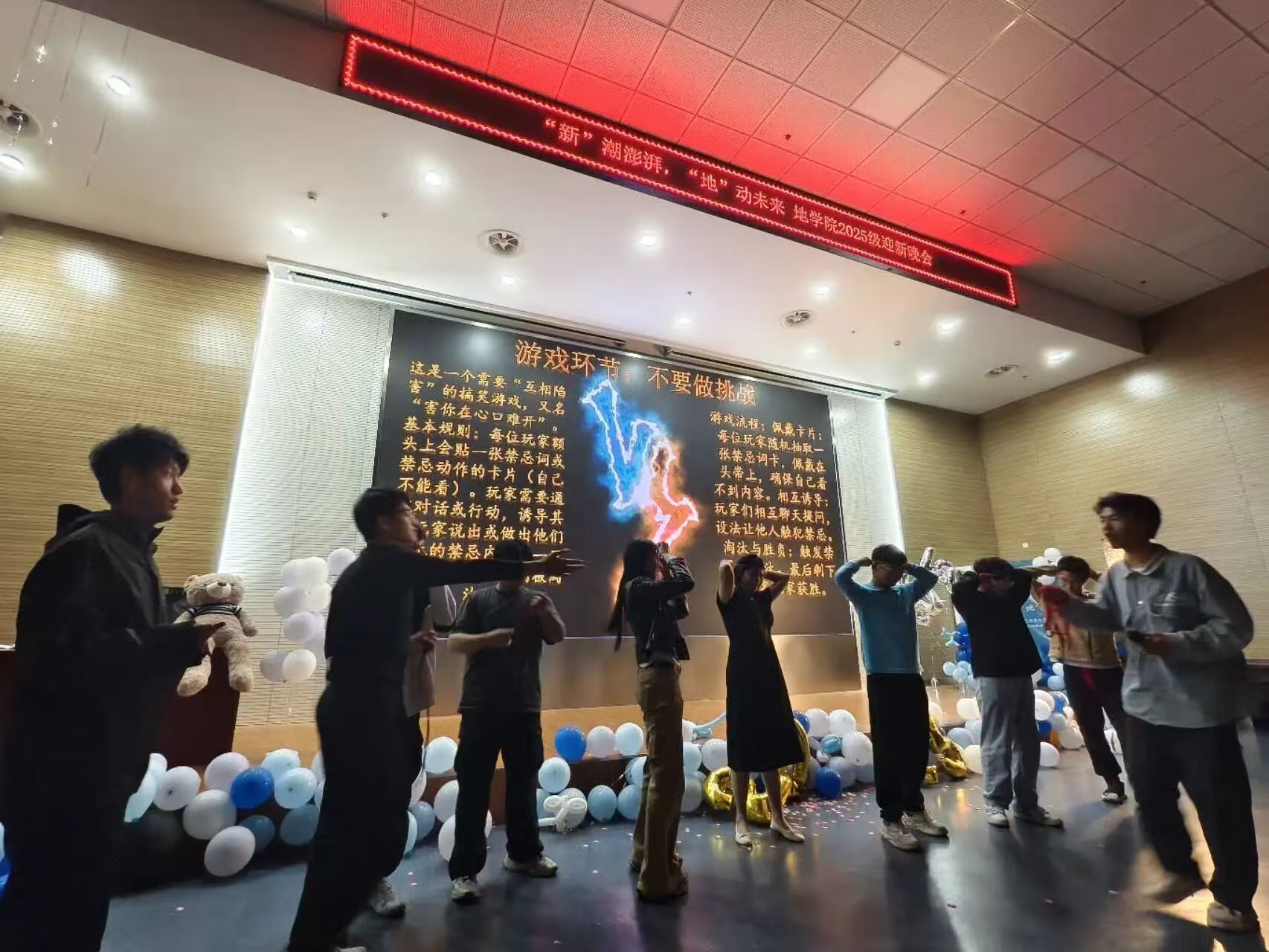 节目表演环节亮点纷呈、高潮迭起。新生代表带来的《舞蹈串烧》,用动感的舞蹈表现了他们对大学生活的憧憬与期待;由尹家豪等一众地质一班同学对《葫芦娃》这一经典作品进行改编;乐器演奏《青花瓷》《荷塘月色》将传统民乐与现代旋律融合,奏响人与自然和谐共生的乐章;魔术表演《袋袋惊心》让现场气氛又推向了一个高潮。互动游戏环节“谁是卧底pro”“你画我猜”拉近了师生距离,现场笑声、掌声、欢呼声此起彼伏,充分展现了地学院的凝聚力与向心力。