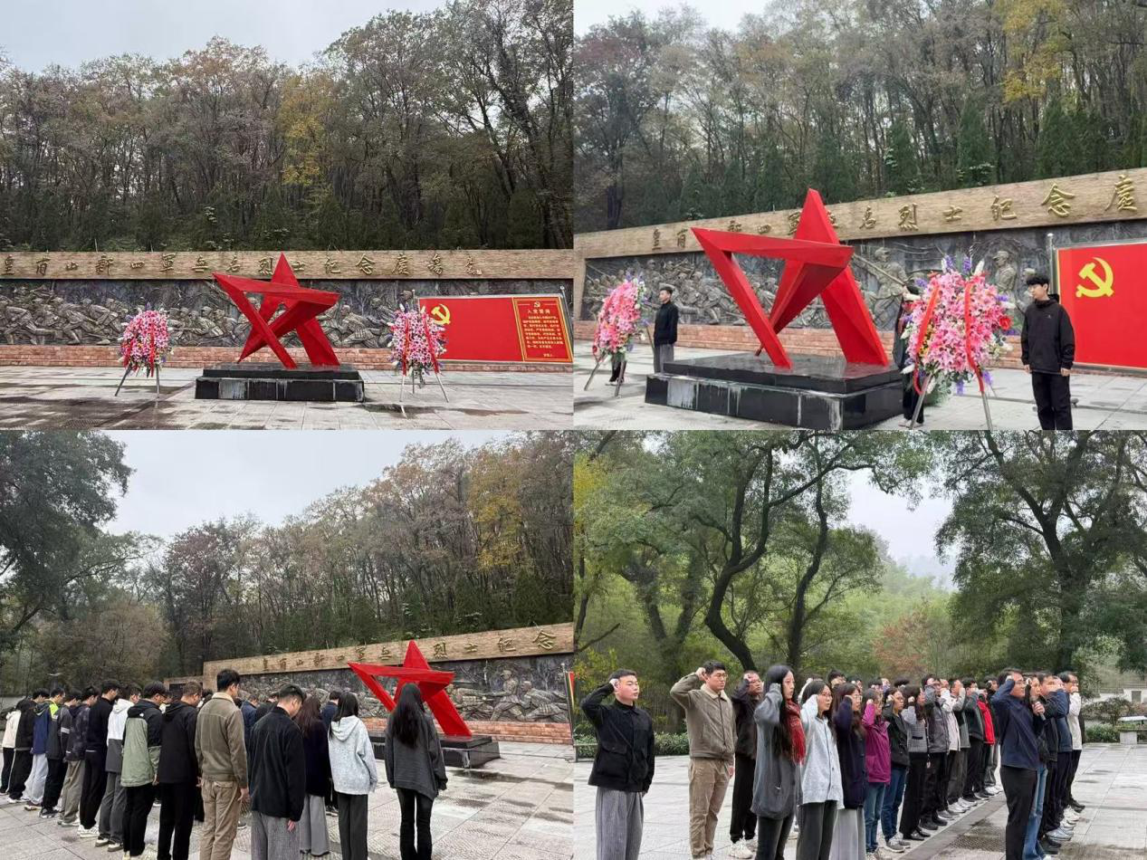 在皇甫山新四军纪念广场,全体党员整齐列队,庄严肃立。学生党员代表向革命烈士纪念碑敬献花圈,全体人员默哀,表达对革命先烈的深切缅怀与崇高敬意。面对鲜红党旗,全体党员重温入党誓词,誓言铿锵,回荡在苍松翠柏之间,传递出不忘初心、牢记使命的坚定信念。现场还开展了“烽火岁月与地质初心”主题党课,结合抗战历史,激励党员传承“为国探脉、为水攻坚”的地质精神。