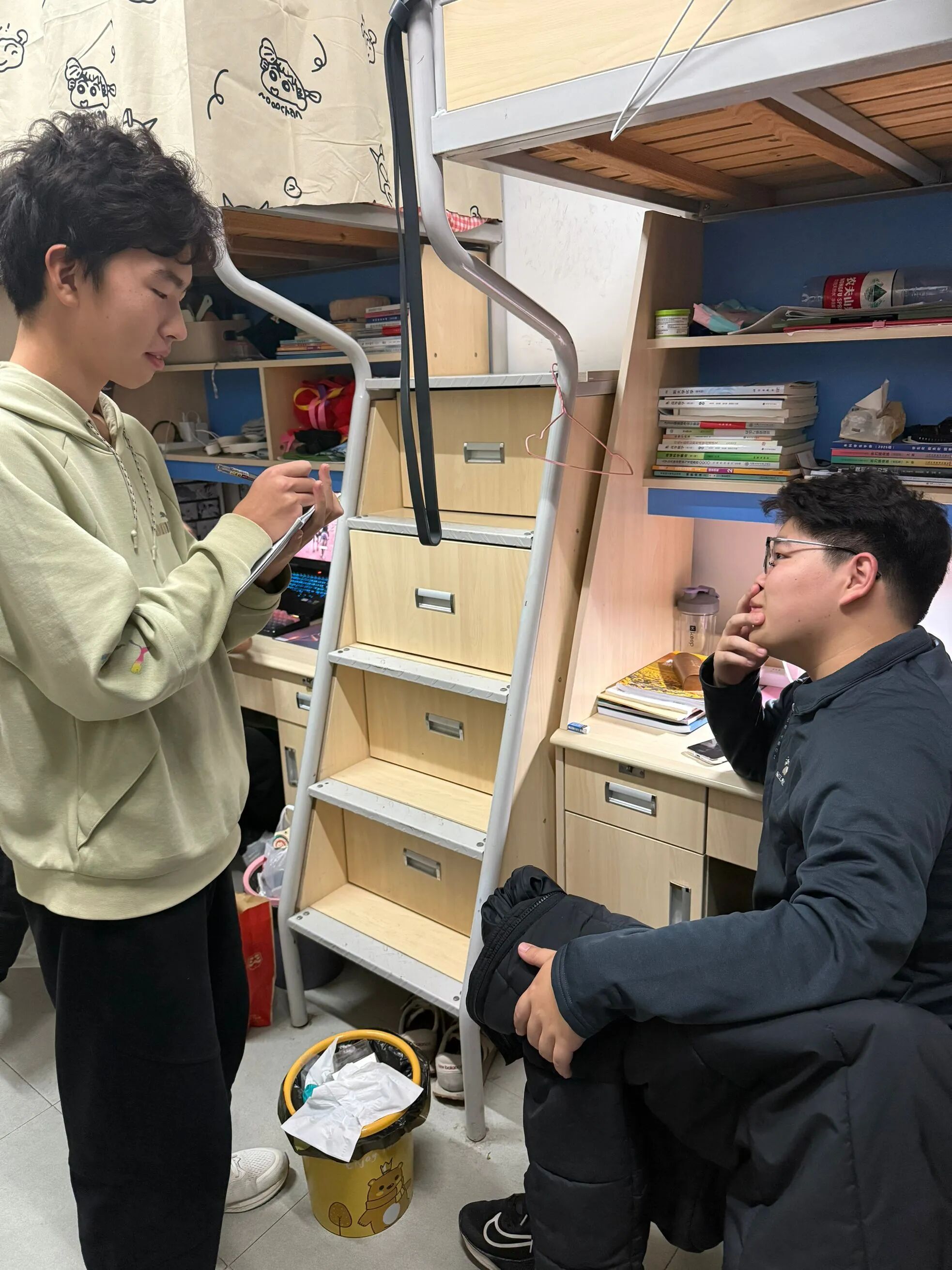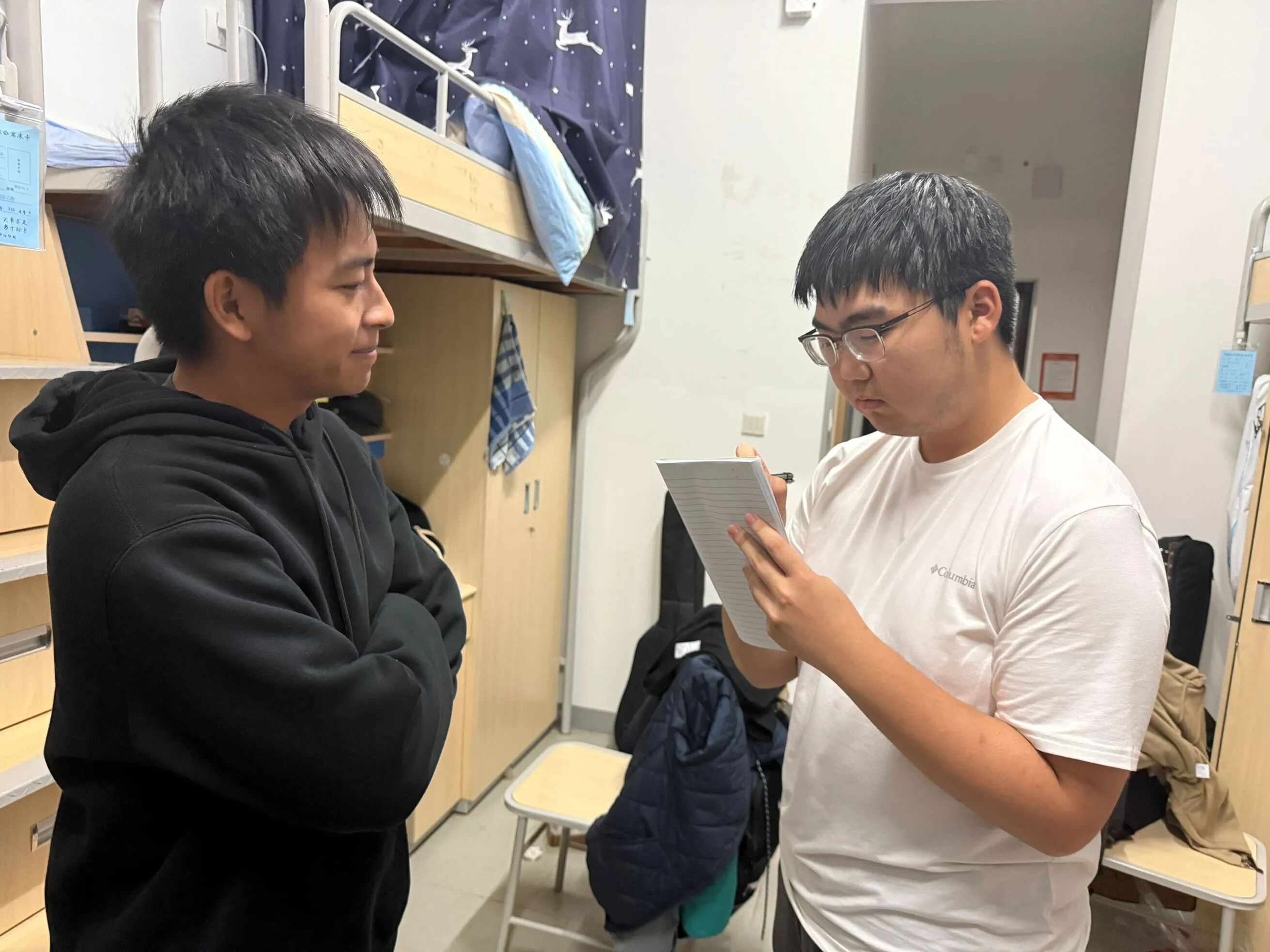 活动筹备阶段,我们围绕“学习适配、生活保障、管理服务”三大核心维度,设计了针对性提问清单,涵盖课程安排、食堂餐饮、宿舍设施、作息管理等多个贴近学子日常的话题。随后,我们组建调研小组,走访了地学院多栋宿舍楼,采用“一对一面对面采访+小组座谈”的形式,与地学院2025级各个专业的学子深入交流。采访中,我们认真倾听每一位同学的真实想法,详细记录大家在校园生活中的痛点问题与改进建议,确保收集到的反馈客观、全面。