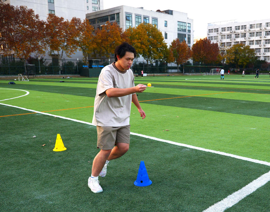 两人三足项目率先开赛,同学们喊着口号同步冲刺,偶有踉跄也互相搀扶,用脚步丈量团结的力量