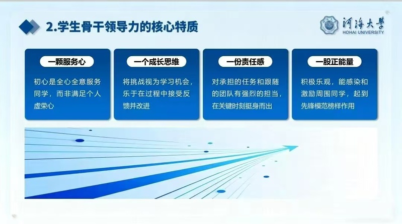 钱家豪,23级水工结构硕士,现任河海大学研究生会主席团成员,曾任校长学生事务助理、水电院学生会主席等12项学生工作职务。曾获河海大学魅力毕业生、中水北方奖学金、全国工图竞赛二等奖等40项校级以上荣誉与竞赛奖项,以学生负责人身份参与石桥、沁水等10余项国省级工程与科研项目,发表SCI一区TOP论文一篇。曾作为项目负责人、河海大学梦想公开课主讲人、学生组织负责人等在各类场合负责汇报答辩,具备较好的PPT制作与汇报能力。