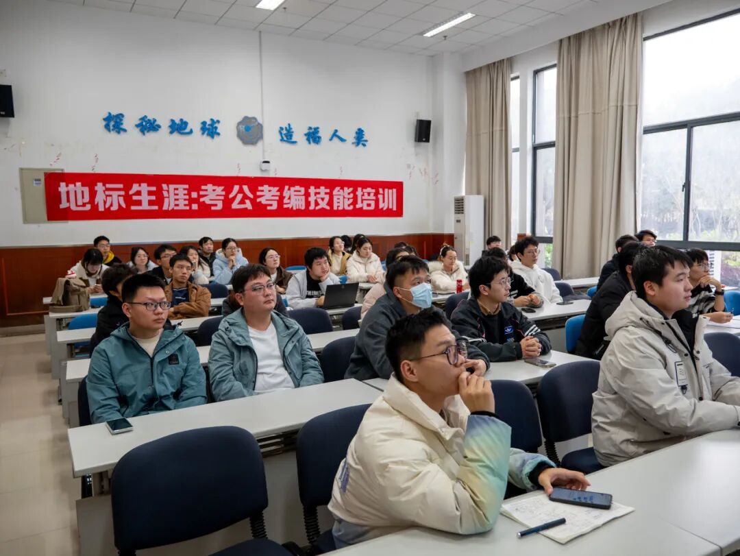 针对当前激烈的公职报考竞争与学子职业规划困惑,为深化生涯教育实践、打通职业发展壁垒、赋能青年精准择业,由地标生涯学生发展工作室主办,地球科学与工程学院科协与学生会协办的考公考编技能培训专题讲座于2025年12月2日下午3点在笃学楼107教室成功举办。