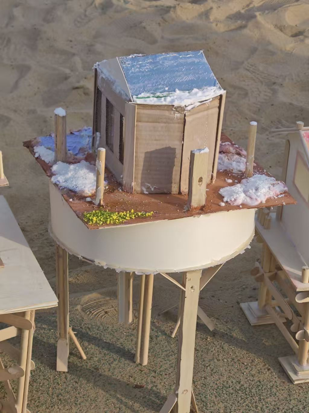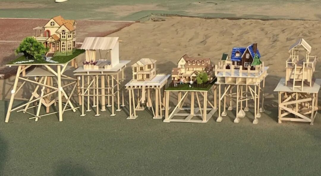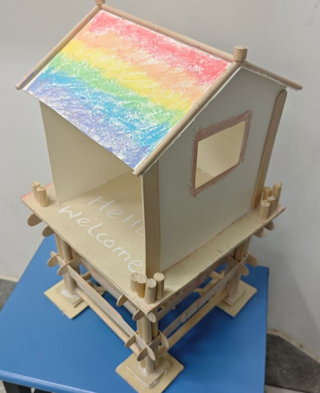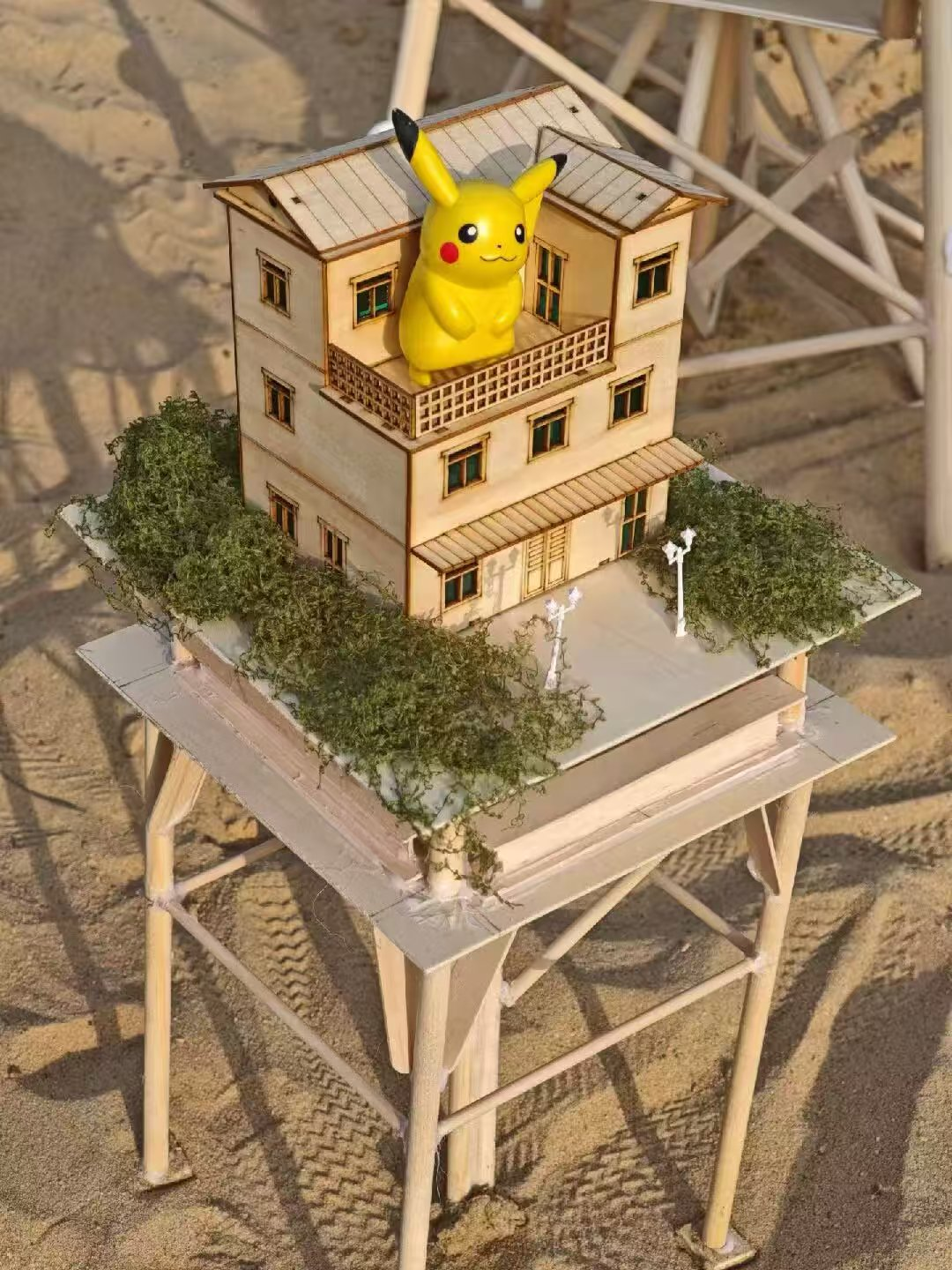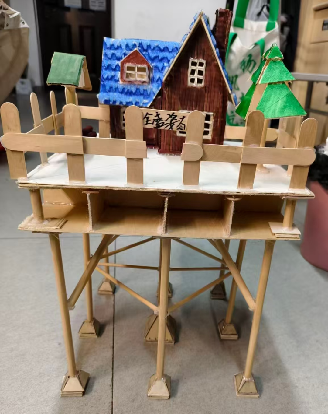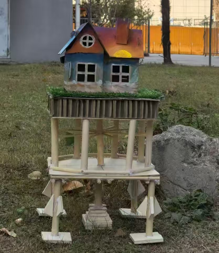 本设计采用榫卯桩基框架、分层承台与轻质围护结构,通过斜撑抗剪、宽基底分散荷载,实现抗沉降与抗震。结合彩虹屋面等童趣元素,兼顾结构稳定性与人文适配性,适用于多地质条件与展示场景,可通过调整框架密度与基底尺寸控制成本、提升落地可行性。