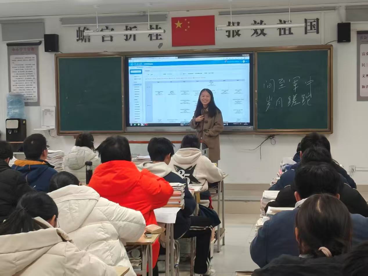 走进高三班级,小队成员以学长学姐的亲切身份开启分享。首先,他们细数河海大学与贵州的不解之缘——作为水利工程领域的顶尖学府,河海为贵州培养了大批水利、环境等专业人才,这些校友扎根家乡,在水利水电、生态保护等岗位上发光发热。随后,从体坛足球联赛屡夺冠军的热血,到艺术社团百花齐放的精彩;从科研领域的丰硕成果,到现代化校园的崭新面貌、天南地北的食堂美食,成员们用生动的讲述和鲜活的案例,让学弟学妹们直观感受到河海大学的综合实力与独特氛围。最后,大家毫无保留地分享高考备考技巧,强调“劳逸结合”的重要性,鼓励同学们在紧张备考中调节好身心状态,全力以赴追逐目标。