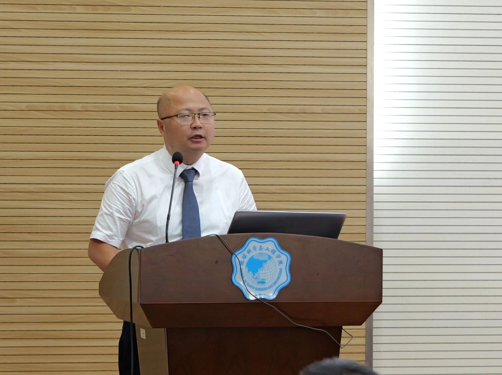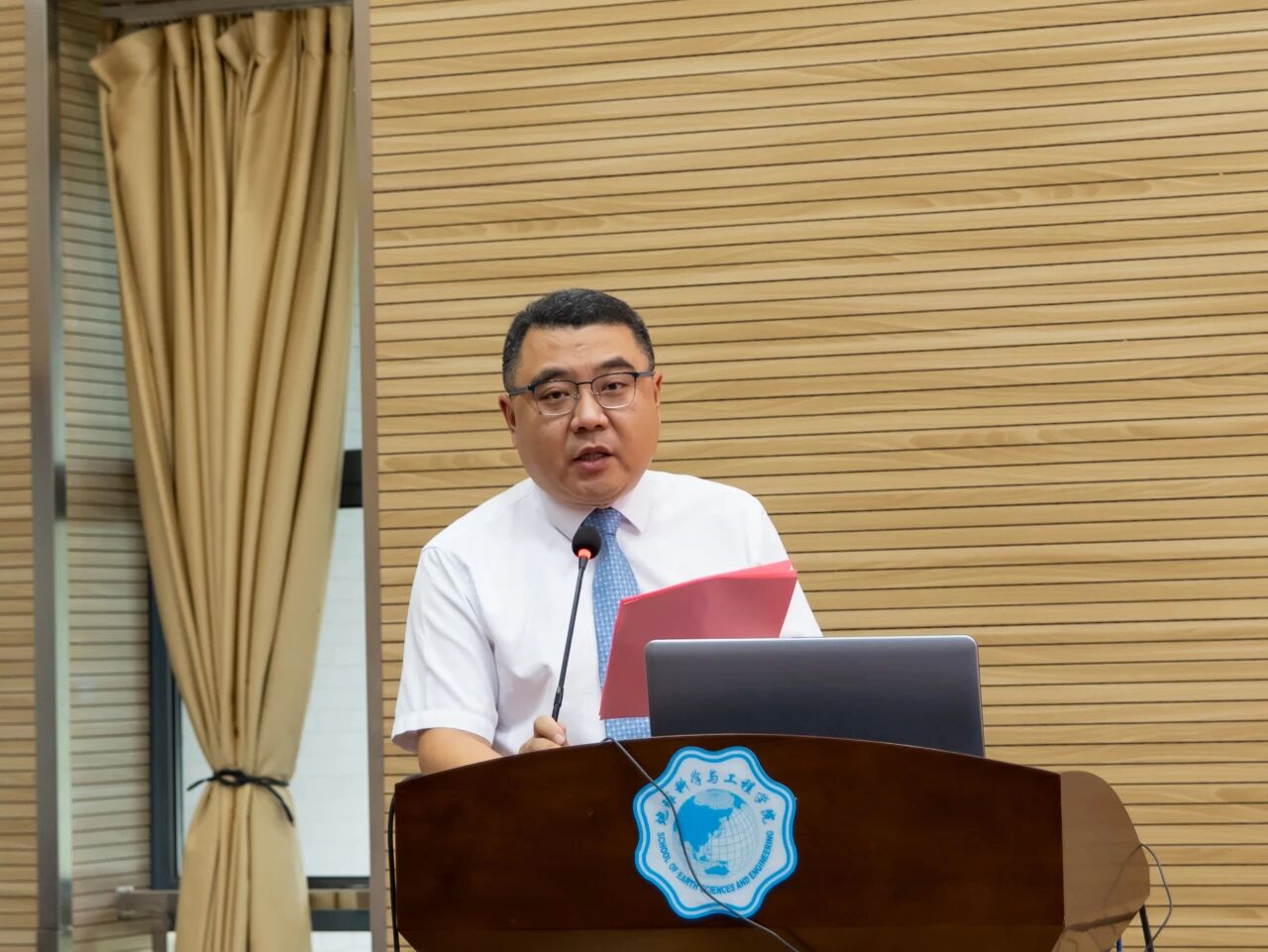 2025年9月8日下午,地球科学与工程学院2025级本科生开学典礼在笃学楼208隆重举行。学院党委书记马孟珂、院长刘瑾、党委副书记副院长张玲彬、副院长肖儒雅、地质系主任黄勇、测绘系主任沈月千、2025级地质1班班导师周盛涛、2025级地质2班班导师车文越、2025级地质3班班导师宋健、2025级测绘1班班导师夏诸葛、2025级测绘2班班导师谢京凯、2025级测绘3班班导师张立林、本科生教学秘书郑茜丹、组织员兼外事秘书李丽洁、团委书记常孝廉、2025级辅导员闫蕴琦、以及2025级全体本科生,共计200余人出席典礼。副院长赵燕容主持典礼。