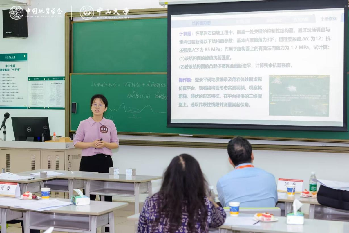 乐慧琳副教授参赛课程为“岩体力学”,展示内容为“结构面形态”。她以岩体稳定性问题为切入点,系统讲解结构面形态量化方法及其对岩体强度的控制作用,结合典型边坡工程与地下洞室案例,深入剖析结构面形态对工程安全的关键影响。授课中融入数值模拟与实物模型演示,增强学生的空间理解与工程判断能力,培养学生的岩土工程思维。
