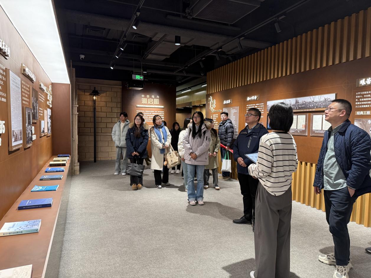 在华东电力设计院展厅,师生们通过丰富的历史资料、重工程案例与荣誉展示,系统了解了华东电力设计院自成立以来的发展历程、业务布局与技术成就。从早期的火电设计到如今在新能源、特高压、国际工程等领域的领先地位,企业“志存高远、追求卓越”的文化理念贯穿始终,给同学们留下了深刻印象。展厅还突出展示了企业在推动能源绿色转型方面的关键技术贡献,使学生对行业前沿与国家战略需求有了更为直观和系统的认识。