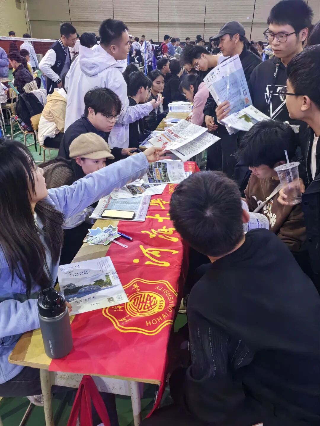 在线下摆摊的活动中,我们在校园内设置了河海大学专属咨询展位,通过展示录取分数线分享、发放资料、一对一交流等形式,为学弟学妹提供个性化的交流与指导。
