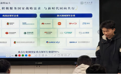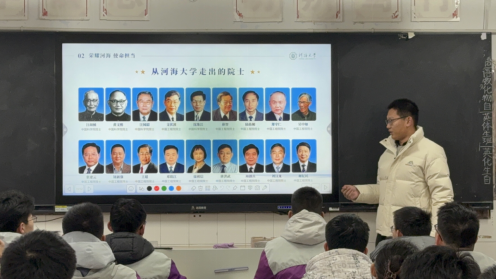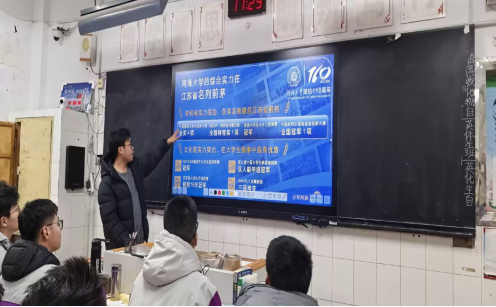 团队成员走进东海高级中学高三八班,团队围绕学科实力、校园生活、招生政策三大核心展开讲解,通过视频、PPT展示。团队首先围绕河海大学的历史与成就展开,讲述了中华5000年治水史及其形成的水利文明,展现了河海大学在中华文明的塑造、传承、延续和发展中的至关重要的作用。同时,我们向高三学子展示了近代以来,河海大学对中国的水利事业发展做出的卓越贡献。从1915年,张謇在南京创办河海工程专门学校之际,河海大学在这百年历程中,汇聚了黄炎培、许肇南、茅以升、张闻天等一批先驱者;从这所水利殿堂走出了汪胡桢、黄文熙、张建云等17位两院院士;首届“国家工程师奖”我校校友顾明、王仁坤、林毅峰、盛金保团队获“国家卓越工程师”和“国家卓越工程师团队”称号。1985年恢复“河海大学”传统校名,邓小平同志亲笔题写校名。作为教育部直属“211工程”重点高校,学校以水利为特色,在三峡工程、南水北调、以及现在的雅下工程都能看到河海人的身影。