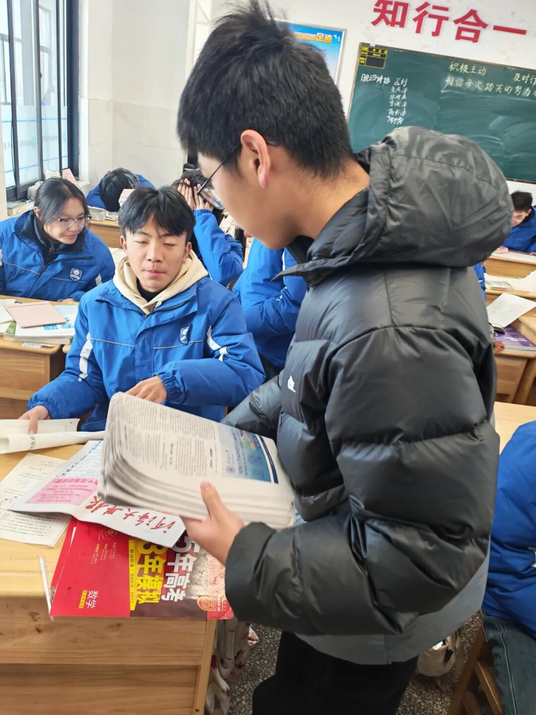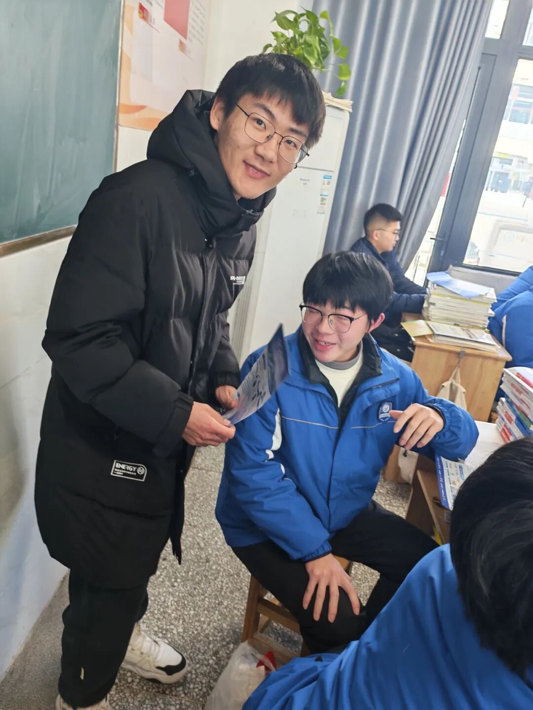 ▲与同学近距离交流