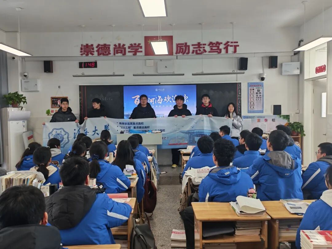 赴赣榆高级中学经济开发区校区开展招生宣讲,分享学习经验,传递感恩之心,助力高三学子高考冲刺,传播河海文化与精神。