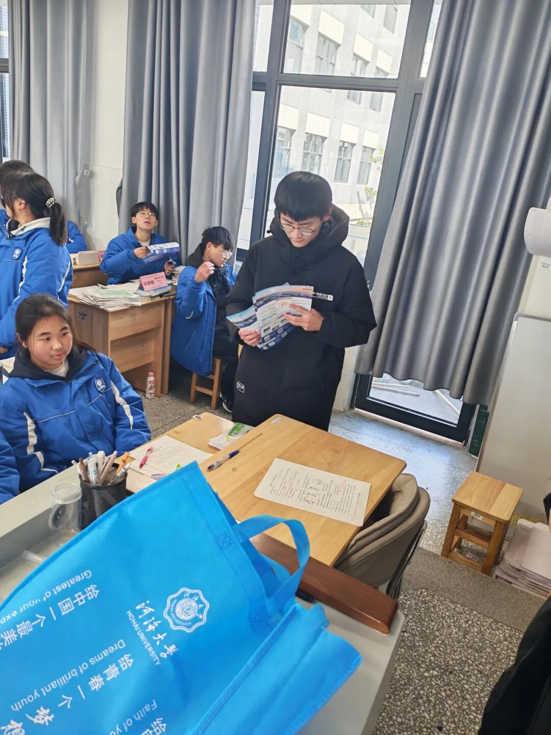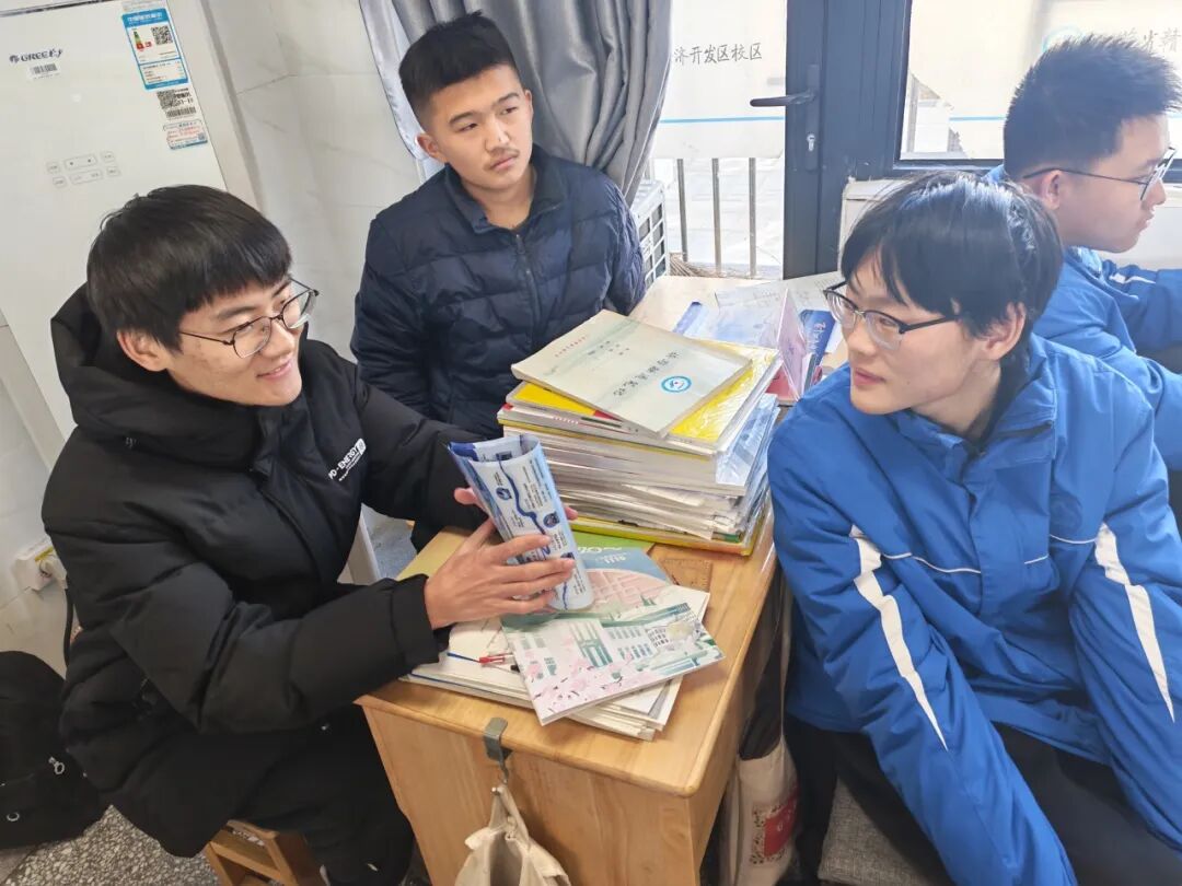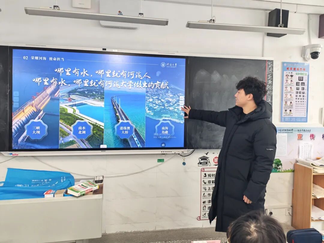 活动伊始,团队成员通过PPT展示,用通俗易懂的语言和真实案例,向同学们全方位介绍河海大学的综合实力,从工科特色优势到丰富多彩的校园社团、科创竞赛和体育活动,让在场学子对这所工科强校形成立体、清晰的认知。宣讲结束后,团队为同学们分发招生材料,方便大家后续深入了解报考细节。